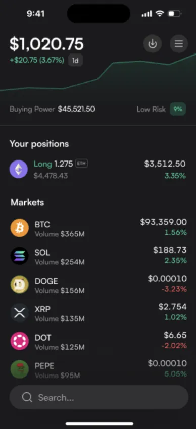 Aktualizacja wprowadza usprawniony tryb domyślny przeznaczony dla posiadaczy kryptowalut nowych w świecie handlu wieczystego. Upraszcza on realizację transakcji dzięki funkcjonalności opartej na przeciąganiu palcem, co pozwala na szybsze otwieranie i zamykanie pozycji. Ponadto nowe narzędzia do zarządzania ryzykiem zapewniają jaśniejszy wgląd w siłę nabywczą, wykorzystanie depozytu zabezpieczającego i ryzyko likwidacji, pomagając w ten sposób w podejmowaniu świadomych decyzji bez konieczności nawigowania po skomplikowanych wykresach lub ustawieniach.