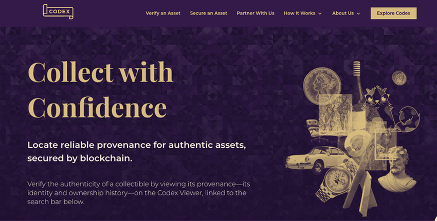Codex to rejestr dzieł sztuki i przedmiotów kolekcjonerskich, który umożliwia weryfikację i przechowywanie informacji o sztuce w formie niezamienialnych tokenów NFT. Dane te są szczególnie przydatne w kwestiach związanych z ubezpieczeniem i bezpieczeństwem związanych z własnością kosztowności czy pożyczek zabezpieczonych aktywami.