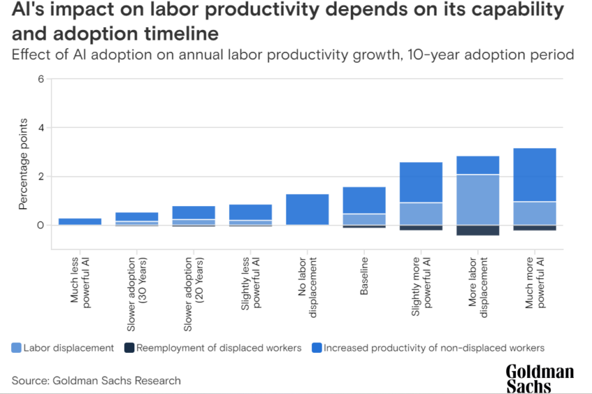 Według OpenAI (twórcy ChatGPT) i University of Pennsylvania, automatyzacja może narazić na utratę równowartość 300 milionów pełnoetatowych miejsc pracy. Badanie, przeprowadzone w 2023 roku, wskazuje, że około 80 procent pracowników w USA może poczuć wpływ na co najmniej 10 procent swoich zadań.