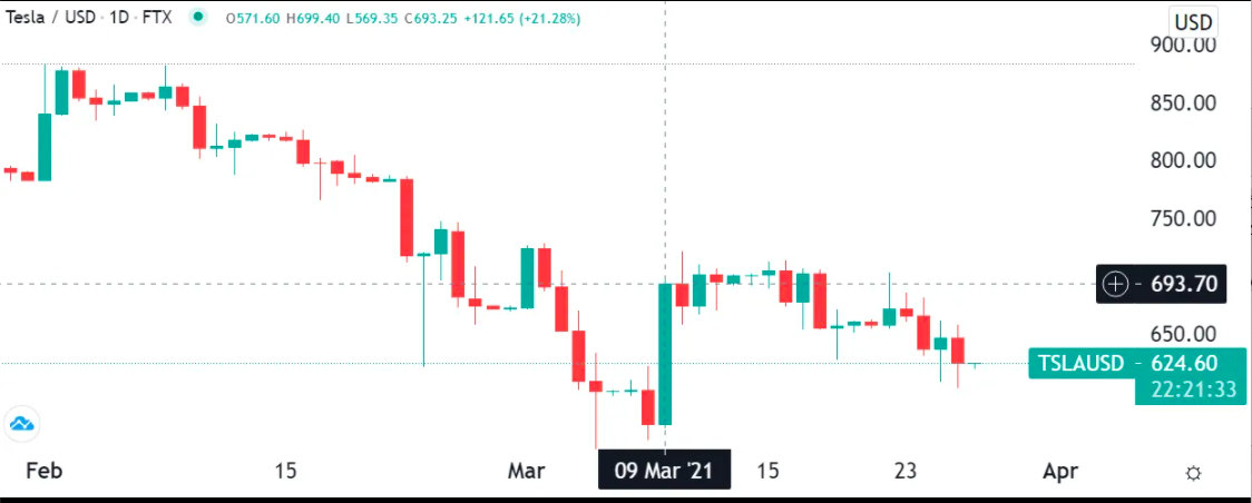 Wyjaśnijmy to na przykładzie akcji Tesla (TSLA). Przez pewien czas jej wartość wzrastała tak bardzo, że Elon Musk został okrzyknięty najbogatszym człowiekiem świata. Wkrótce jednak ponownie prześcignął go Jeff Bezos z Amazona – w marcu 2021 akcje TSLA zaliczyły poważny spadek o 22%.