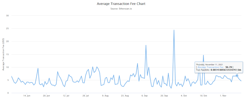 Na przykład, możesz dowiedzieć się, czy warto używać Ethereum w danym momencie, patrząc na wykres średniej opłaty transakcyjnej.