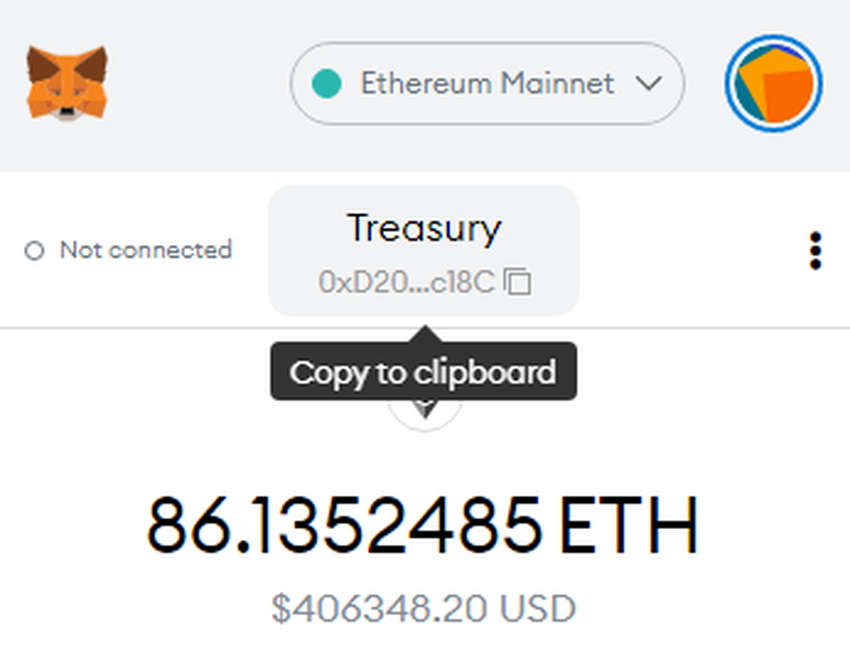 Jako przykład do śledzenia transakcji na Etherscan, użyjemy MetaMask, najbardziej popularny portfel kryptowalutowy z ponad 10 milionami użytkowników. Po prostu klikając pod nazwą konta MetaMask, skopiujesz adres portfela do schowka.