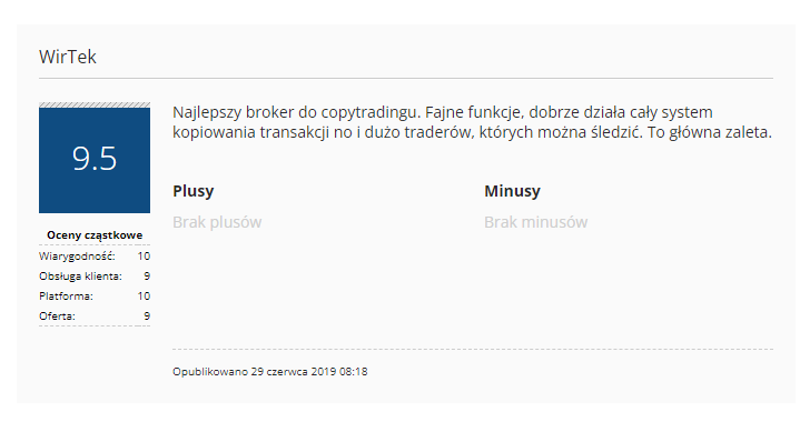 Jeśli chodzi o opinie eToro to są one w większości pozytywne – czy to na forum, czy na stronach z opiniami. Użytkownicy cenią sobie tego brokera głównie za prosty interfejs, który sprzyja początkującym, ogromną liczbę opcji inwestycyjnych, niskie opłaty i prowizje, a także możliwość inwestycji w kryptowaluty!