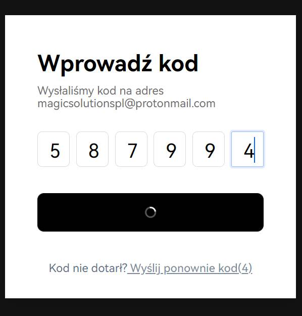 Krok 4: Wpisz kod aktywacyjny, który otrzymasz na adres mailowy lub telefon.