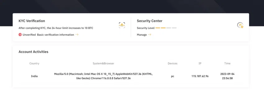 Musisz jednak ukończyć weryfikację KYC specyficzną dla danego kraju, aby aktywować korzystanie z bramek płatności oraz wypłat i depozytów w walutach tradycyjnych w celu zakupu i handlu kryptowalutami. KYC pozwala także zwiększyć dzienny limit transakcji do 10 BTC.