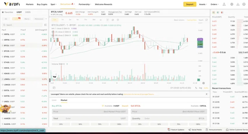 BYDFi wyróżnia się na tle konkurencji dzięki ofercie lewarowanych tokenów. Wyglądają one jak standardowe kryptowaluty, ale są wyposażone we wbudowaną dźwignię finansową, umożliwiającą inwestorom zakup dużych ilości tych samych tokenów i korzystanie z niewielkich, ale satysfakcjonujących ruchów cenowych.