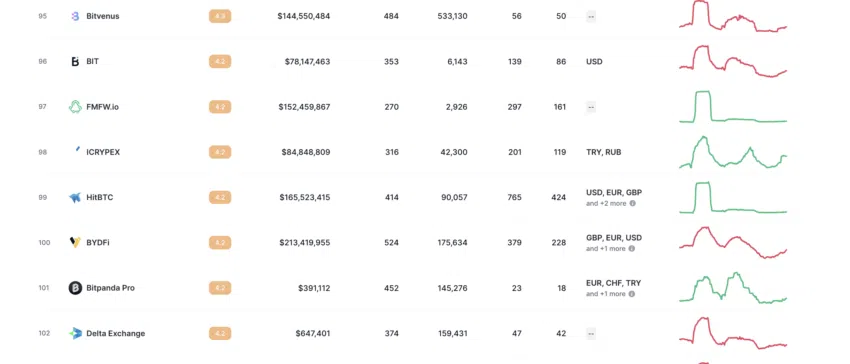 Na podstawie rankingu giełd na CoinMarketCap, BYDFi zajmuje miejsce w top 100.