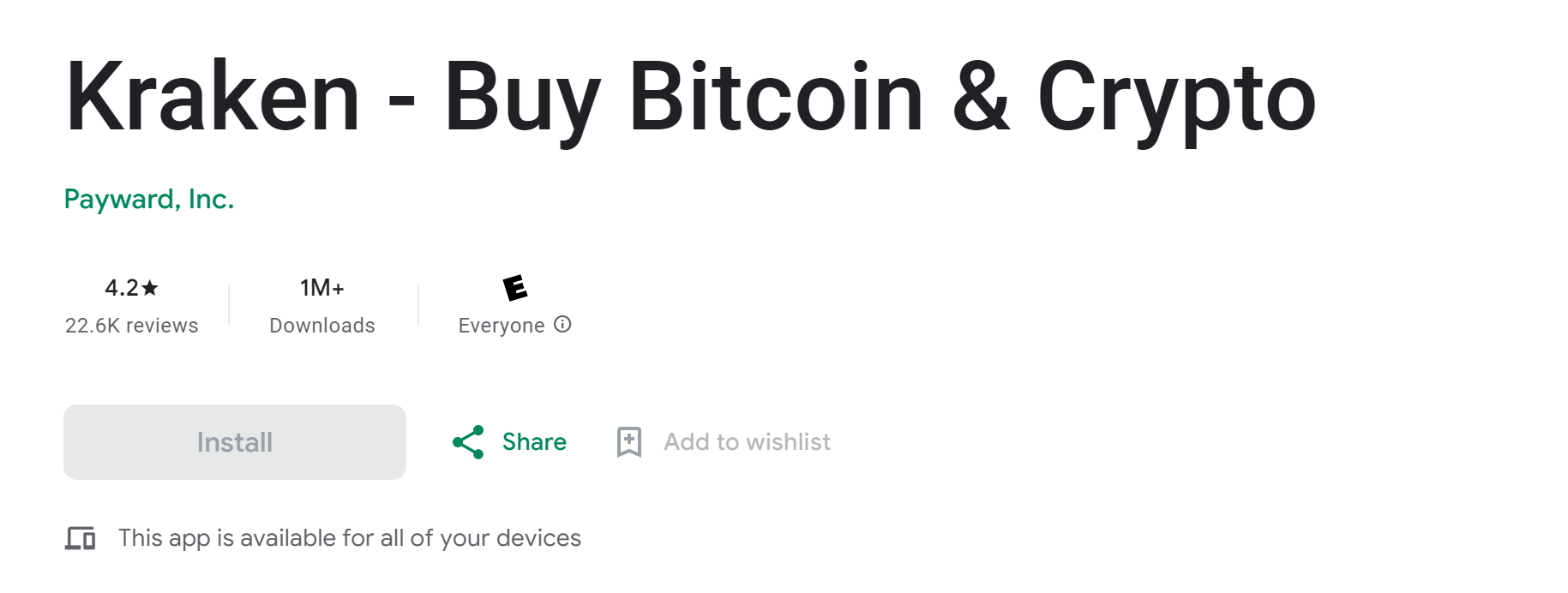Opinie Kraken ma również bardzo pozytywne jeśli chodzi o aplikację mobilną. W przypadku wersji na Androida to 4,2/5 przy ponad 1 milionie pobrań: