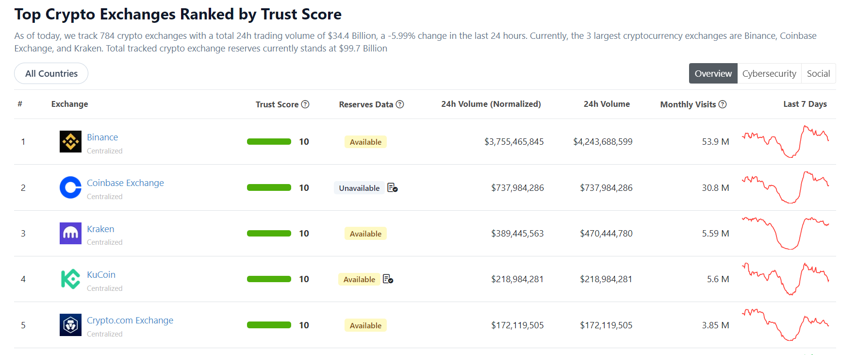 Kraken zyskał również reputację i opinie za swoje uczciwe podejście do handlu. Giełda działa zgodnie z zasadami przejrzystości. Zapewnia też dokładne informacje dotyczące wolumenu obrotu, cen i dostępnych par walutowych. Obecnie jest to 3 największa platforma do handlu kryptowalutami według Coingecko: