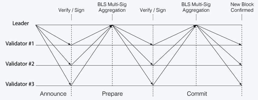 Sieć Harmony wykorzystuje mechanizm proof-of-stake (PoS), w przeciwieństwie do innych blockchainów shardingowych, które wykorzystują mechanizm proof-of-work (PoW) do wyboru walidatorów. Osiąga ona konsensus za pomocą skalowalnego algorytmu FBFT (Fast Byzantine Fault Tolerance), który jest 100 razy szybszy niż PBFT (Practical Byzantine Fault Tolerance).