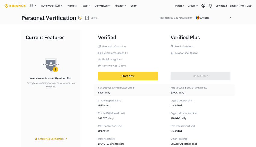 Aby umożliwić zakupy kartą kredytową i debetową na Binance, musisz ukończyć proces weryfikacji tożsamości.