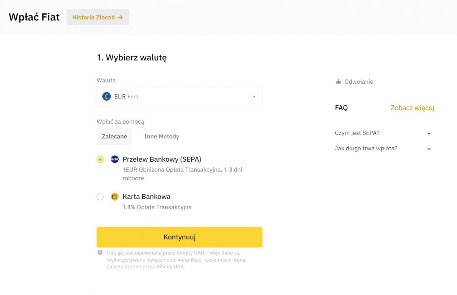 Na potrzeby tego artykułu wybieramy opcję Wpłata Fiat.
