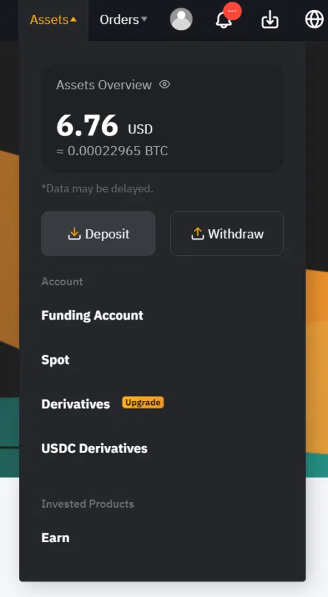 Kiedy już pomyślnie uda Ci się przejść proces rejestracji, musisz dokonać wpłaty. W tym celu najedź myszką na “Assets” i kliknij “Deposit”.