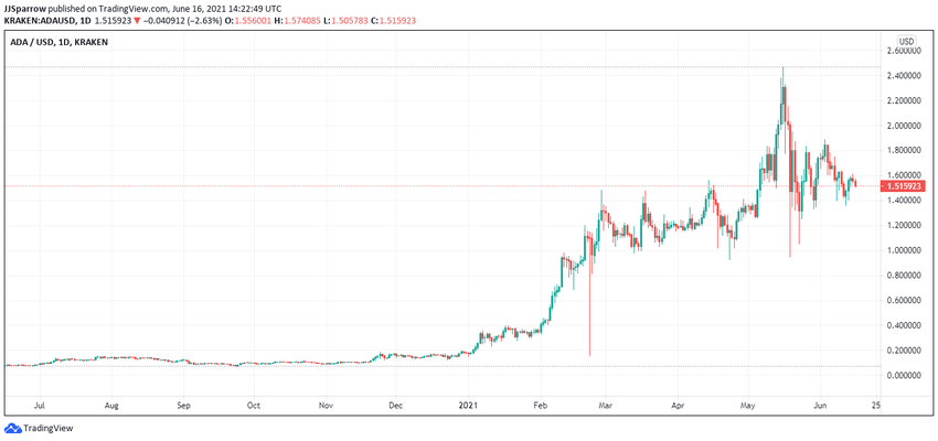 Z maksymalną podażą 45 miliardów ADA, kapitalizacja rynkowa Cardano utrzymuje się na poziomie 55,58 miliardów dolarów. 1 czerwca jego wolumen tradingowy wzrósł o prawie 13%. Co ważniejsze, w oczekiwaniu na integrację inteligentnych kontraktów poprzez aktualizację Alonzo, cena ADA gwałtownie skoczyła. Od stycznia 2021 r. do czerwca 2021 r. kryptowaluta ADA skoczyła o 886%, z 0,1753 USD do 1,73 USD, w piku ceny przekraczając 2 dolary. Obecnie wyceniana jest na $1,41 w czasie pisania tego przewodnika.