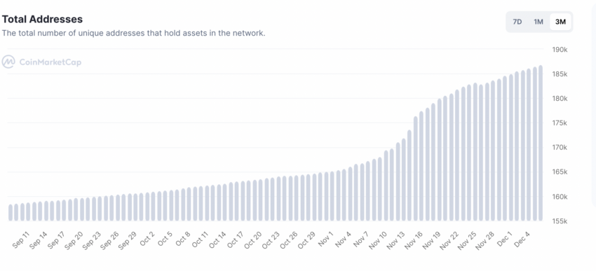 Pomimo rynku niedźwiedzia, liczba adresów posiadających tokeny GALA wzrosła od września do grudnia.