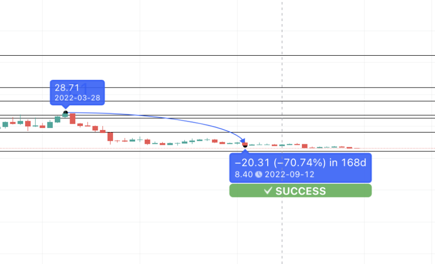SponsoredJeśli odniesiemy się do powyższego wykresu, odległość i procentowa zmiana kursu od M do A1 następuje w 343 dni przy wzroście 1093,64%.