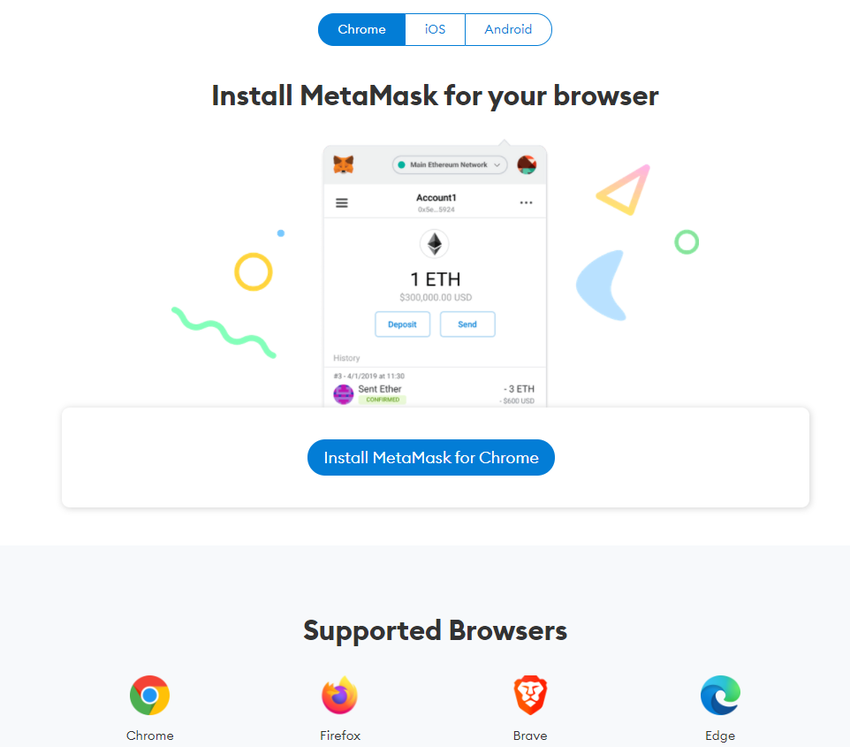 Pierwszym krokiem do uzyskania dostępu do bogatego ekosystemu dApps Ethereum jest pobranie rozszerzenia MetaMask z oficjalnej strony internetowej. Zobaczysz wsparcie dla wszystkich trzech głównych systemów operacyjnych – Windows, iOS i Android. Odpowiednio, w zależności od platformy, MetaMask może być albo desktopowy, albo mobilny.