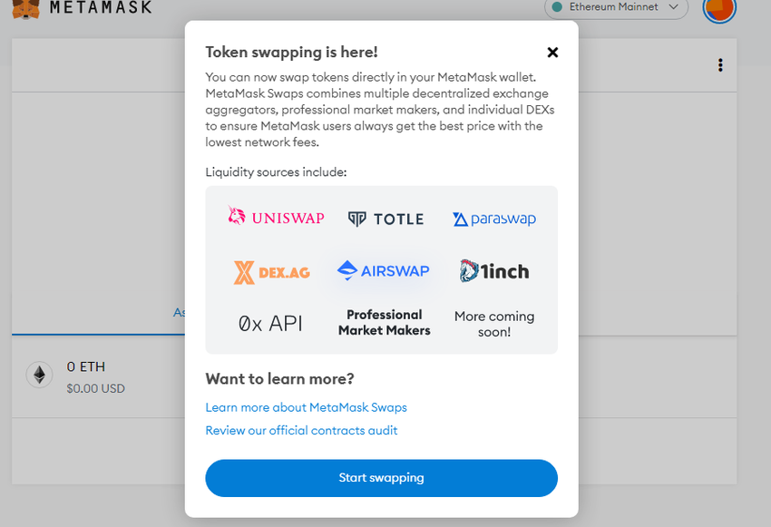 Jak wspomniano wcześniej, portfel MetaMask pozwala na wymianę pomiędzy ETH i dziesiątkami tokenów DeFi. Można postrzegać ETH jako główną kryptowalutę dla całego ekosystemu DeFi. Protokoły takie jak Uniswap lub 1inch są mini-ekosystemami, z których każdy posiada token do zarządzania i opłat sieciowych.