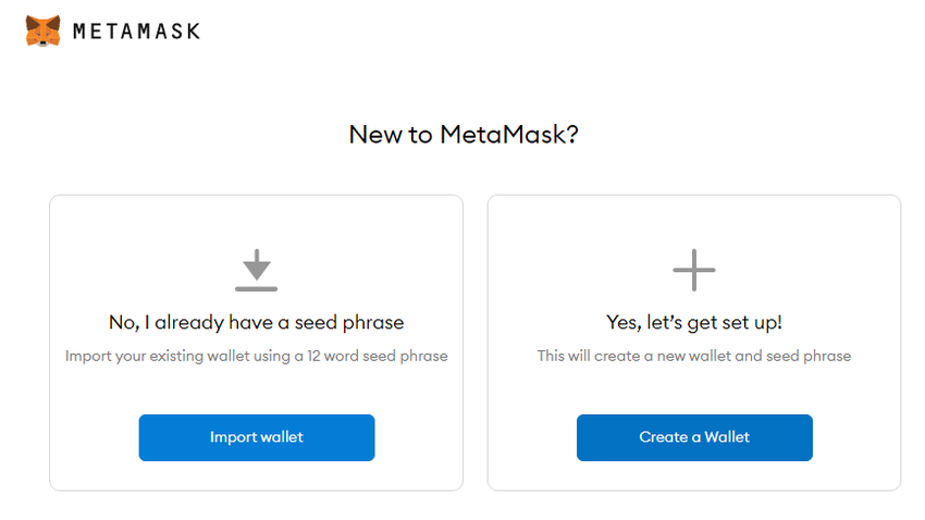 Po zainstalowaniu MetaMask w swojej ulubionej przeglądarce, kliknij na przycisk “Rozpocznij” w celu utworzenia portfela.