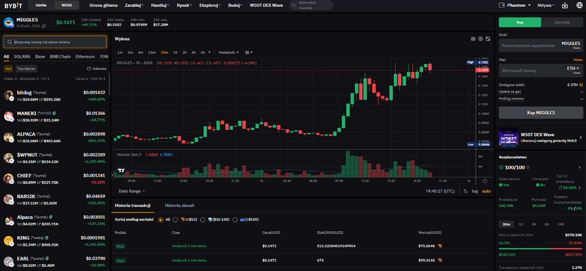 - Bybit DEX Pro: Stworzona przez znaną na rynku krypto markę, oferuje oprócz narzędzi handlowych także automatyczne analizy kontraktów tokenów zapewniając dodatkowe bezpieczeństwo.