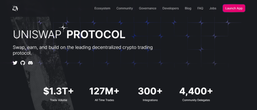 Oczywiście na naszej liście jest Uniswap, największa zdecentralizowana giełda pod względem wolumenu obrotów. Platforma ułatwia handel kryptowalutami, wykorzystując jednocześnie moc automatycznego animatora rynku w swoich funkcjach handlowych i określaniu cen.