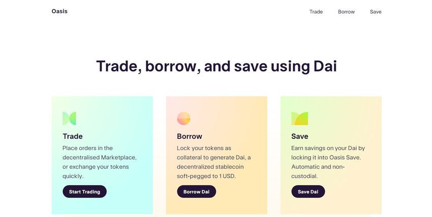 Oasis DEX jest częścią ekosystemu MakerDAO, projektu, który stworzył stablecoin DAI i token governance MKR. Protokół Oasis DEX to pula płynności dla rynku ETH/DAI, podczas gdy sam Oasis jest większą platformą, która pozwala użytkownikom robić dużo więcej, w tym zarabiać prowizje na tokenach DAI