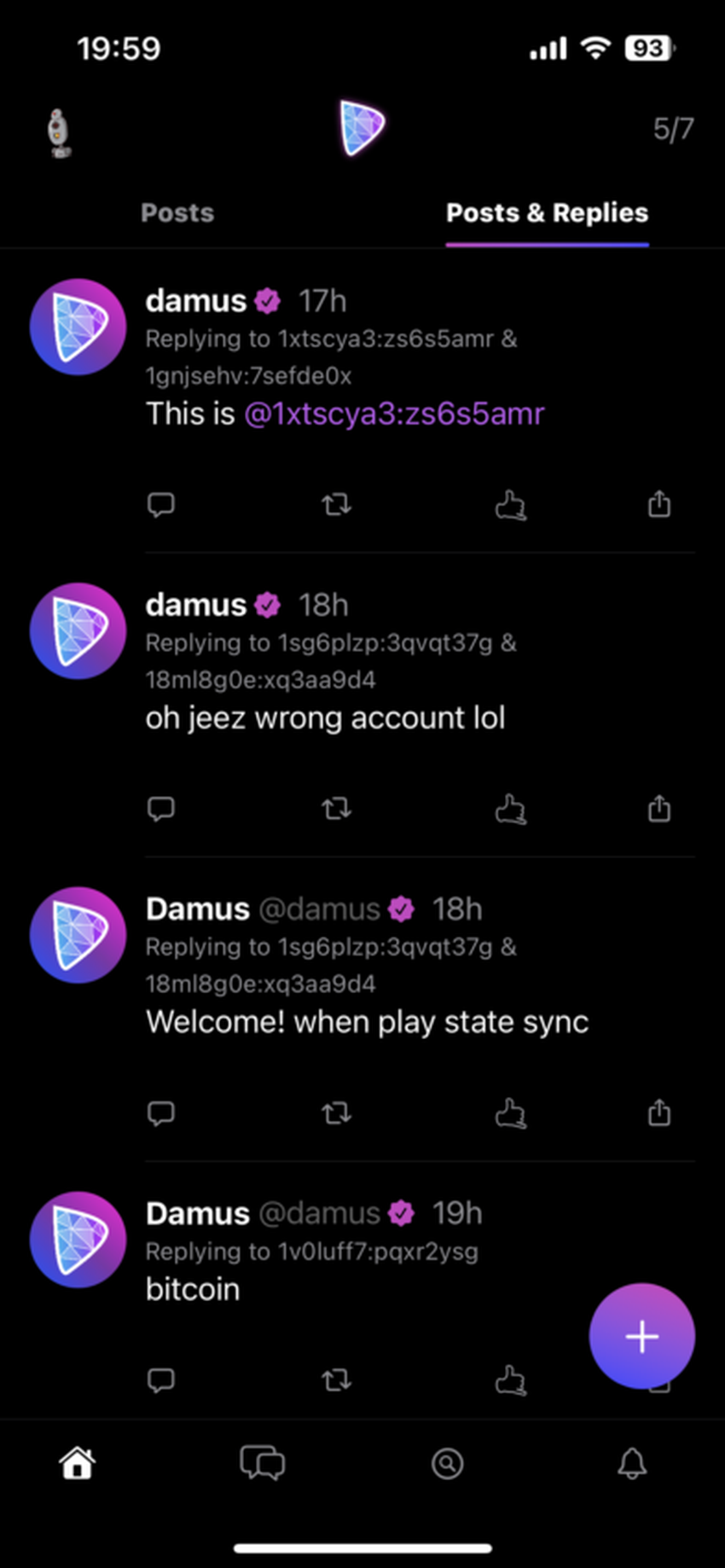 Do tego raz założone przekaźniki pokazują się niezależnie od systemu operacyjnego. To sprawia, że przekaźniki Nostr są wieloplatformowe. Jeśli więc śledzisz kogoś na Damusie i otworzysz Snorta używając tego samego klucza prywatnego, posty z poniższego konta będą widoczne nawet na Snort.