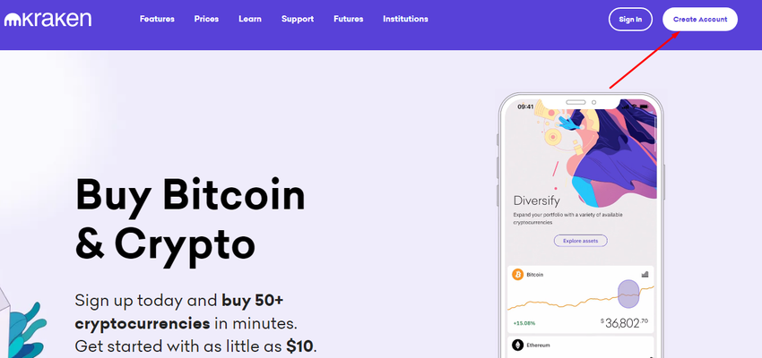 Zarejestruj się w serwisie Kraken, przechodząc do witryny Kraken i klikając przycisk Utwórz konto.