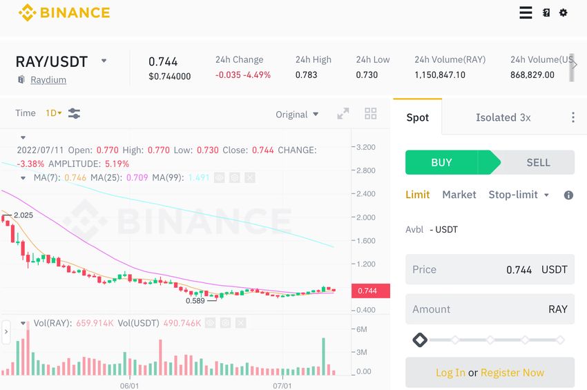 Token RAY jest notowany na praktycznie wszystkich głównych scentralizowanych giełdach kryptowalutowych, w tym Binance, FTX, Coinbase, MEXC i wielu innych. W rezultacie kupowanie Raydium jest łatwe, ponieważ wystarczy zarejestrować się na platformie i zbadać opcje zakupu. Ponadto, oprócz zakupu na scentralizowanych giełdach kryptowalutowych, możesz to zrobić przy pomocy niektórych popularnych portfeli bezpowierniczych, takich jak Trustwallet i MetaMask.