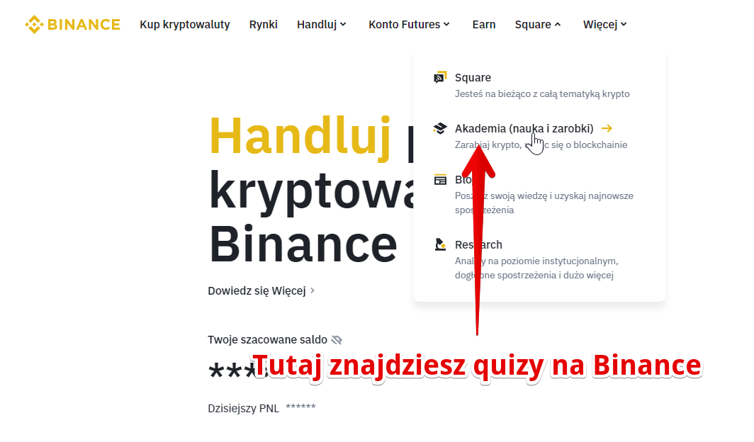 Strona 1: www.binance.com – sekcję Learn and Earn znajdziesz tutaj.