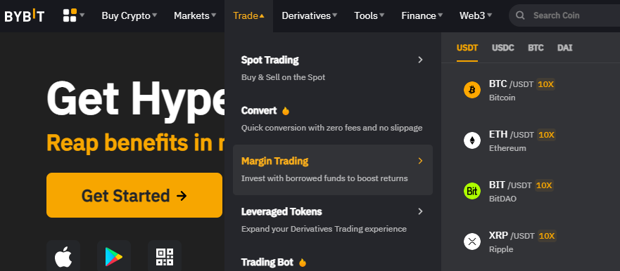W końcu możesz zacząć shortowanie. Przejdź do zakładki “Trade” i wybierz “Margin Trading“. Po prawej stronie zobaczysz dostępne pary kryptowalutowe.