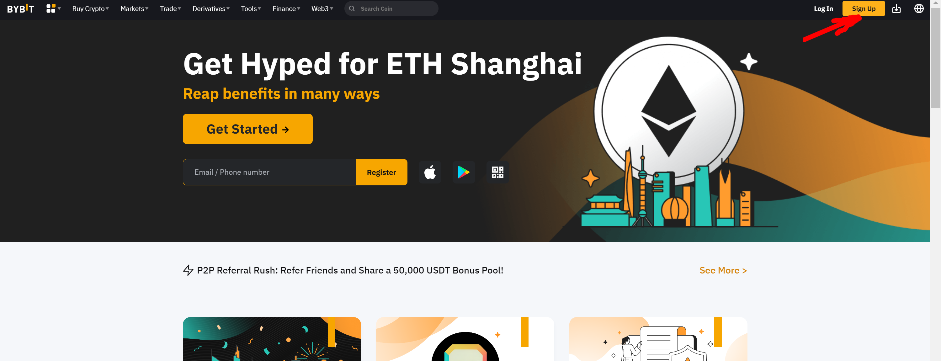 Jak założyć konto na giełdzie kryptowalut Bybit? Po pierwsze przejdź na stronę www.bybit.com. Następnie kliknij przycisk Sign Up w prawym górnym rogu. Pamiętaj też, że podczas rejestracji możesz odebrać bonus bybit. Jeżeli zakładasz konto na innej platformie one również oferują bonusy za rejestrację.
