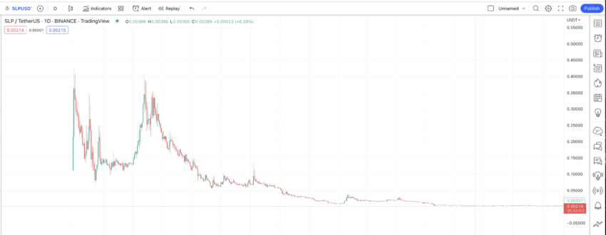 - SLP jest obecnie notowany o 99,32% niżej w stosunku do swojego ATH.