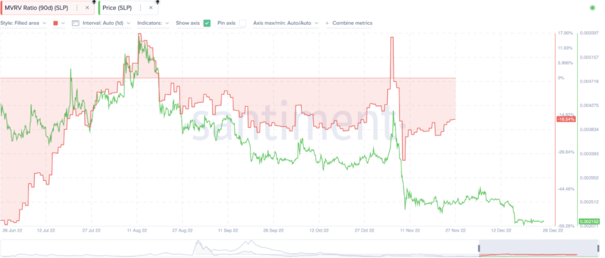 Wreszcie, 90-dniowy wskaźnik MVRV do listopada wskazywał na rynkowe dno dla SLP. Może to doprowadzić do krótkoterminowego wzrostu, jeśli niskie poziomy MVRV utrzymają się przez kilka miesięcy.