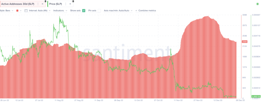 Liczba aktywnych adresów trzymających SLP osiągnęła szczyt w grudniu. Jednak kurs nie zareagował pozytywnie. To pokazuje, że ludzie mogą trzymać SLP, aby uzyskać przewagę wewnątrz ekosystemu Axie Infinity.