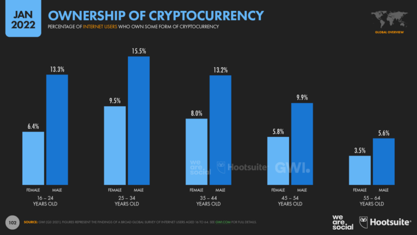 Docelowi odbiorcy to świetne przejście do następnego punktu – marketingu w mediach społecznościowych. Twoi główni odbiorcy są bardziej niż prawdopodobne w mediach społecznościowych. Milenialsi poniżej 35 roku życia są bardziej skłonni do posiadania kryptowalut, zgodnie z badaniami Data Reportal. Później wskaźniki posiadania stale spadają.