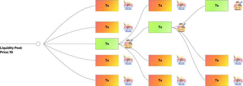 Jak już wcześniej wspomniano, SundaeSwap w swojej obecnej formie jest w zasadzie Uniswapem dla Cardano. Jako zautomatyzowany animator rynku, posiada on pule płynności, w których dostawcy płynności przydzielają dwa aktywa. Dostawcy płynności otrzymują tokeny LP za swój wkład w płynność.