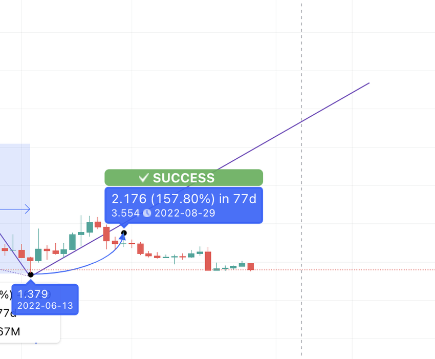 Teraz, jeśli wykreślimy ścieżkę, zobaczymy, że kurs SNX wynosił 3.554 USD w dniu 29 sierpnia 2022 roku. To wskazuje, że nasza analiza zmierza w dobrym kierunku.