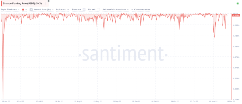 Rynek Binance SNX-USDT jest popularny i aktywny. Jednak stopa finansowania związana z nim od dłuższego czasu znajduje się w negatywnym terytorium. To prawdopodobnie nie jest pozytywny znak dla kursu SNX w krótkim terminie.