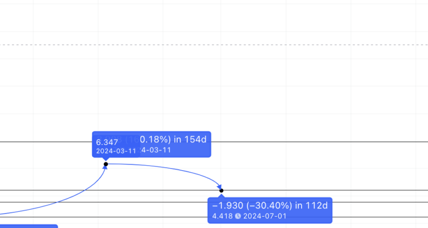 Dołek może uderzyć w bezpośredni poziom wsparcia 4,418 USD, który był szczytem formacji z końca 2022 roku.