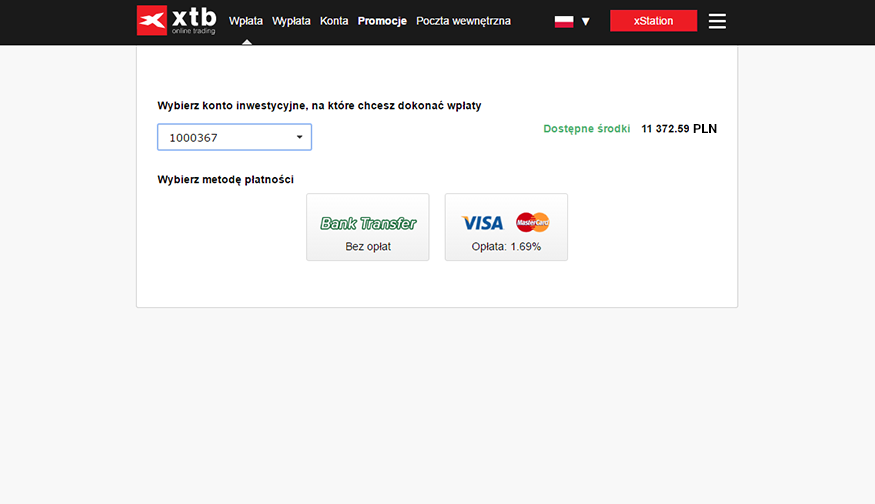 Wypłaty są darmowe, o ile przekraczają kwotę 500 zł. Na XTB warto więc realizować większe transakcje. Jeśli chodzi o wpłaty i wypłaty to XTB wspiera: