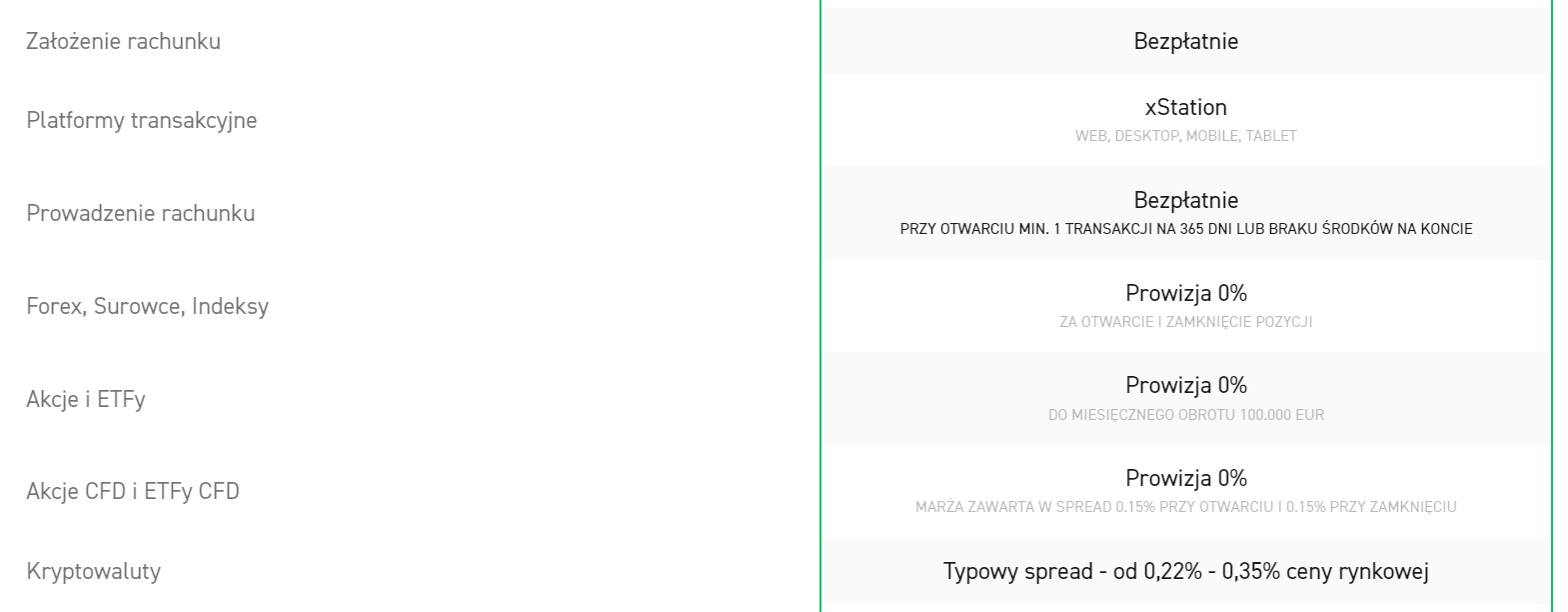 Uwaga: Szczegółowe informacje oraz ewentualne zmiany w strukturze opłat dostępne są na oficjalnej stronie brokera XTB.