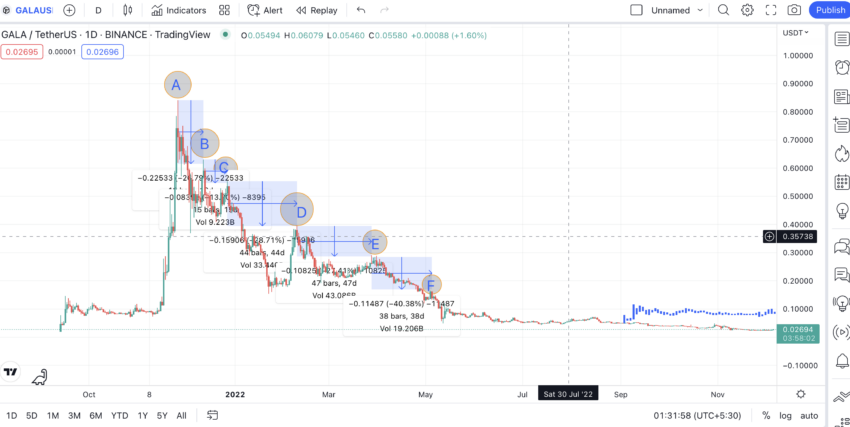 Choć obiecujący, token DAR nie powtórzył jeszcze wyników AXS. Cena ATH tokena DAR wynosiła 6,38 USD w listopadzie 2021 r. i od tego czasu spadła o ponad 80%.
