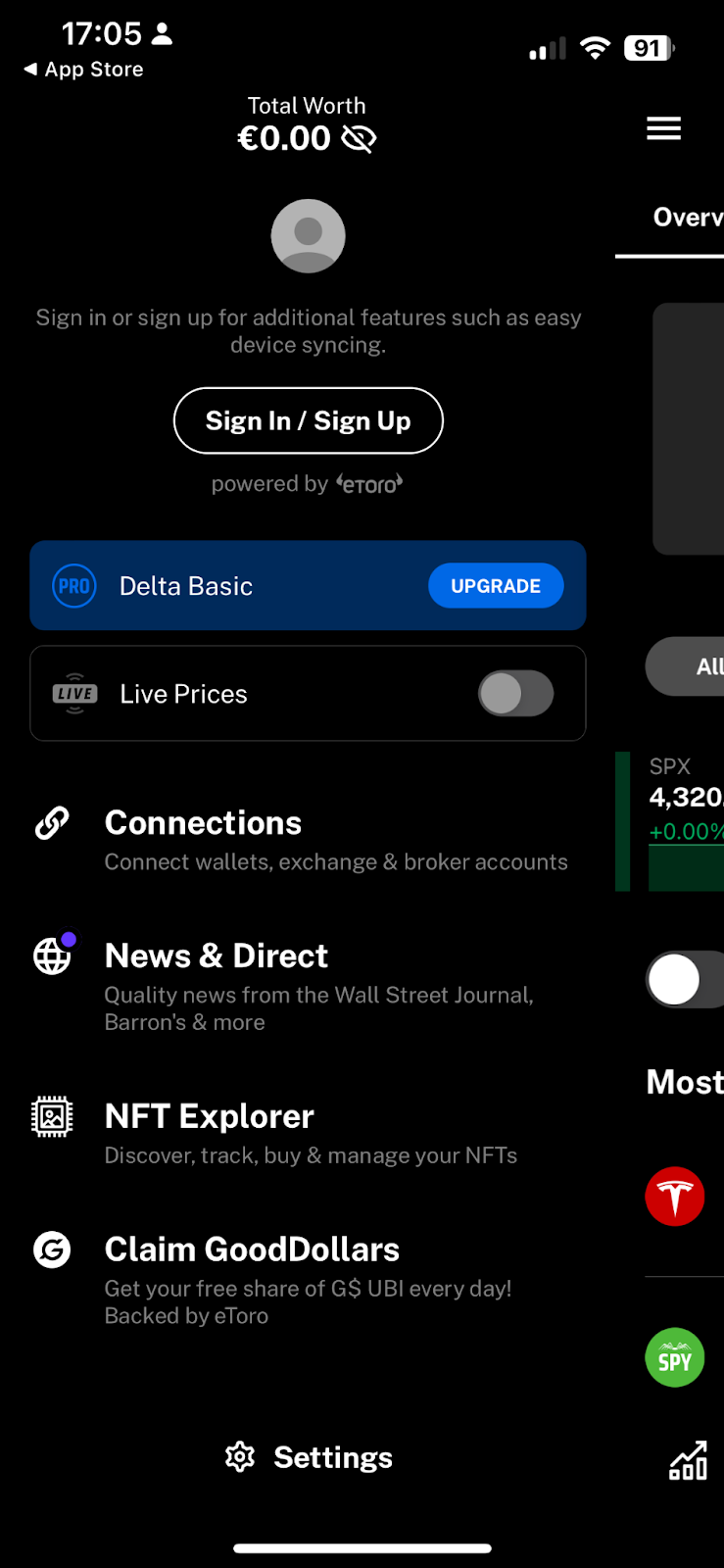 SponsoredNależy pamiętać, że aplikacja mobilna Delta jest obsługiwana przez eToro. Jeśli masz już konto eToro, możesz zarejestrować się przy użyciu tego samego konta. W takim przypadku Twój profil publiczny i dane osobowe udostępnione na eToro zostaną również udostępnione Delta.