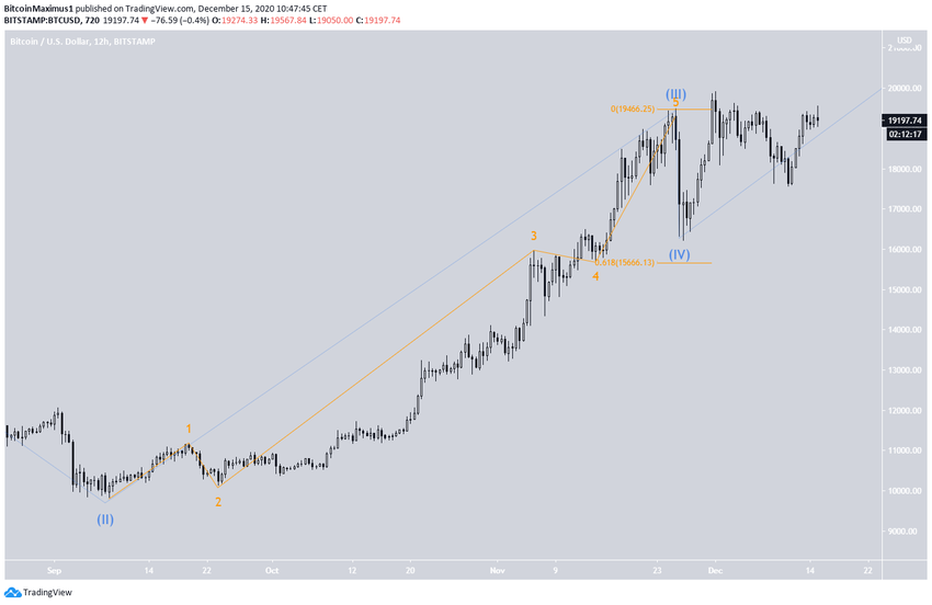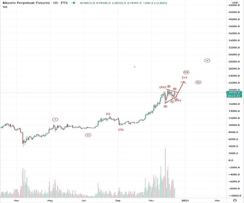 Wcześniej wydawało się, że jest to duża struktura korekcyjna. Jednak brak odrzucenia w pobliżu rekordu wszech czasów (ATH) i konsolidacja, która później nastąpiła, sprawiają, że bardziej prawdopodobne jest, że jest to impuls wzrostowy.