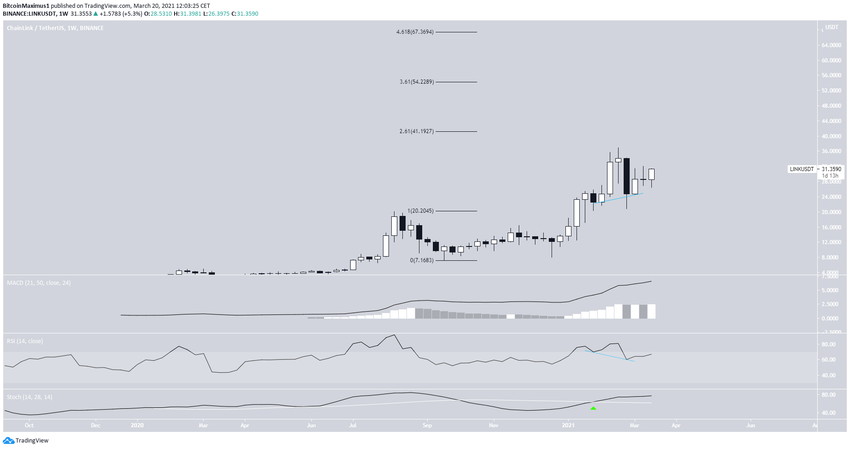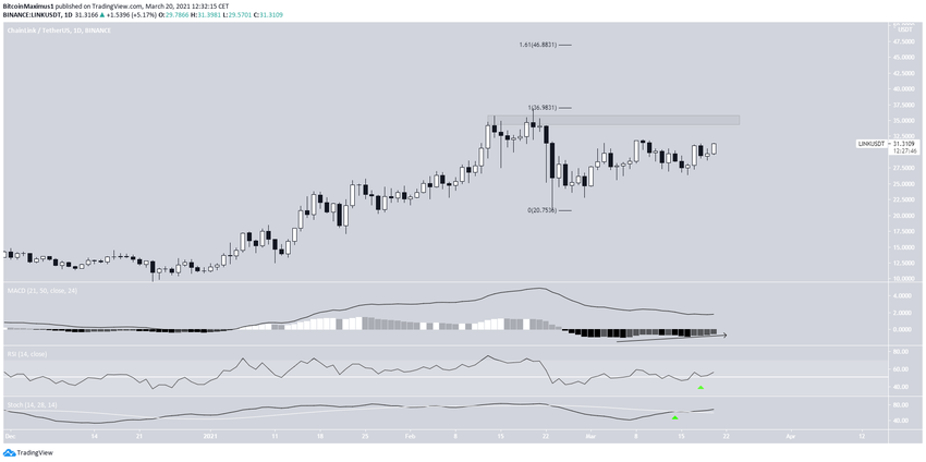 W dniu 20 lutego LINK osiągnął nowy rekord wszech czasów (ATH) na poziomie 36,93 USD. Jednak prawie natychmiast potem gwałtownie spadł, trzy dni później osiągając dołek na 20,80 USD. Od tego czasu porusza się w górę.