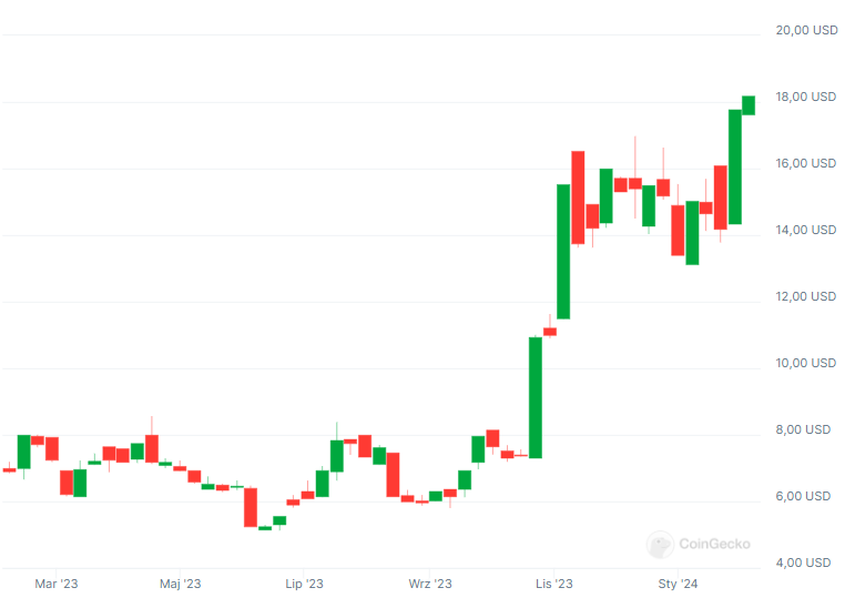 Chainlink (LINK) utwierdził swoją pozycję jako kluczowy element w sektorze zdecentralizowanych finansów (DeFi), oferując niezawodne usługi Oracle. Ostatni wzrost wartości i awans LINK na 11. miejsce pod względem kapitalizacji rynkowej świadczy o rosnącej popularności. Aktywacja uśpionych portfeli przyczyniła się do gwałtownego wzrostu LINK, z nowym celem cenowym na poziomie 20 USD.