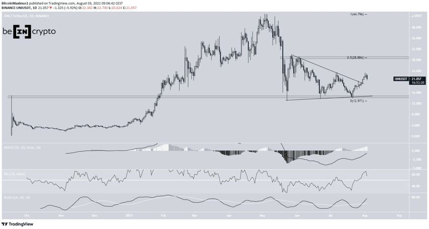 Następujące po tym odbicie doprowadziło UNI do poziomu 30 USD po zaledwie czterech dniach.