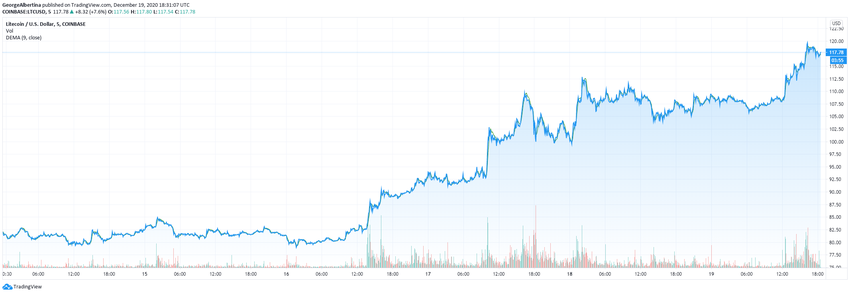 Po tym, jak Bitcoin (BTC) osiągnął nowy rekord wszech czasów, Litecoin (LTC) przebija się w kierunku najwyższej ceny, jaką widział od ponad roku.