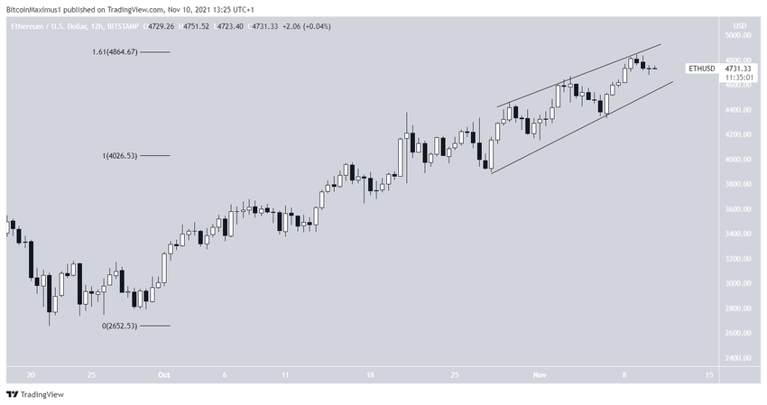 Ethereum (ETH) wzrasta wewnątrz klina zwyżkującego od 28 października. Takie kliny są uważane za niedźwiedzie wzory, co oznacza, że bardziej prawdopodobne byłoby załamanie.